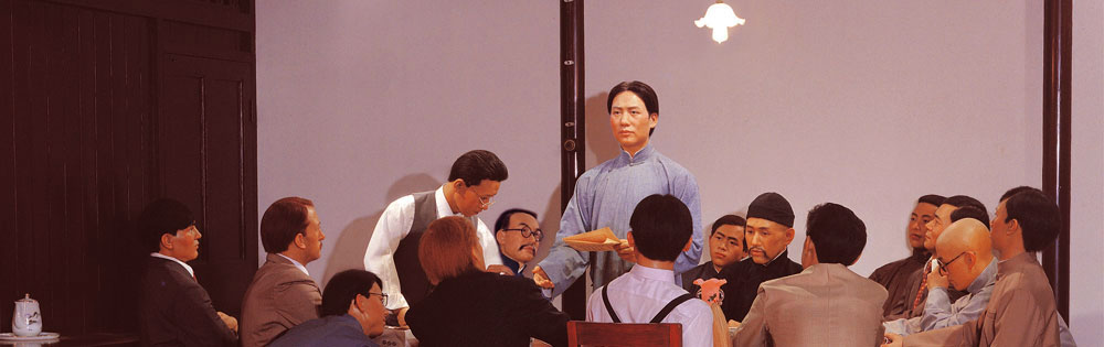 幻影成像表现了在南湖游船上继续召开的中共第一次全国代表大会 1991年6月南湖革命纪念馆独立馆舍建成并对外开放。2011年6月30日,南湖革命纪念馆新馆开放。 “时机到了!世界的大潮卷得更急了!洞庭湖的闸门动了,且开了!浩浩荡荡的新思潮业已奔腾澎湃于湘江两岸了!顺他的生。逆他的死。”“我们知道了!我们醒觉了!天下者我们的天下,国家者我们的国家,社会者我们的社会。我们不说,谁说?我们不干,谁干?” 青年毛泽东的话,鲜活反映了进行“建党大业”的“真的勇士”们,靠着这股子“干”劲,在短短的几年时间中,由礼赞法兰西文明,转而坚信马列主义,并以他们为桥梁,实现了马克思主义理论与中国工人运动的结合,从而建立了中国共产党。 有了中国共产党,中国革命的面貌,从此就焕然一新了! 在今日的上海和中国,一大会址远说不上摩登和高大了。但在人们心中,它所占空间却很大,分量依然很重。 |