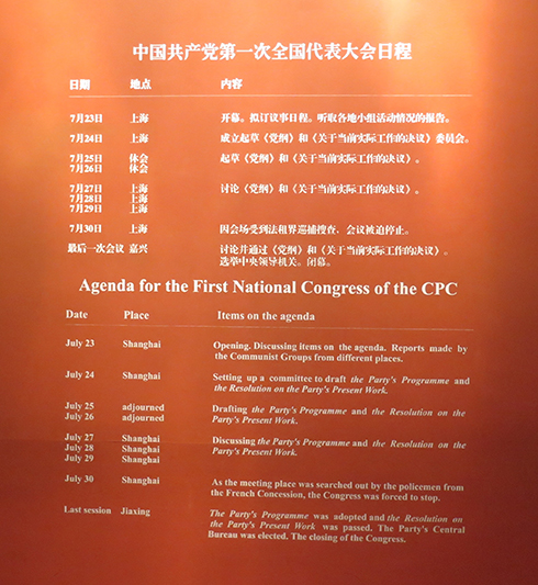 一大 1921年7月23日晚,上海法租界望志路106号(今兴业路76号),来自全国各地的13名代表和来自共产国际的两名代表陆续来到这里,房间当中一张长会议桌,旁边摆着十几把椅子和凳子,中国共产党第一次全国代表大会就在这里开幕了,中国历史的新篇章也从这一刻开始书写。