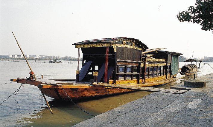 浙江嘉兴南湖的一艘游船 嘉兴南湖,当年十几名党员走下船舷、登岸起步的地方,不再只是秀丽的江南游览胜地,历史赋予它新的内涵。