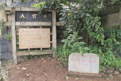“自贡”这个名字来源于两口盐井——“自流井”和“大公井”。大公井位于贡井区旭水河边,是驰名中外的中国井矿盐发祥地之一。其开凿时间在北周武帝之前。北周武帝时(561—578),在大公井所在地设公井镇。唐武德元年(618),把初设的荣州治设于此。北宋时,这里成为卓筒井的发源地之一。据史料记载,大公井废弃多年之后,清乾隆四十四年(1779),在其遗址上修建了东岳庙。2009年2月,该遗址被列为自贡市文物保护单位。