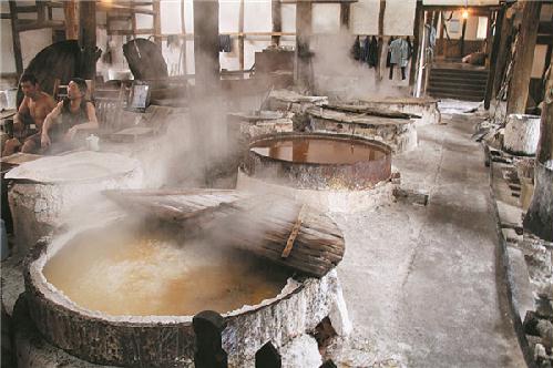 燊海井更是有名。它开凿于1832年,采用中国传统的冲击式(顿钻)凿井法,依靠碓架和人工,历时三年而成。1835年钻凿到1001.42米深时出卤水,是世界上第一口超千米的深井。现完好保持着十九世纪的布局和风貌,是一处典型的清代井盐生产现场。在现场,专家们观看了古盐井的原始风貌,目睹了用大铁锅土法熬制井盐的传统工艺。