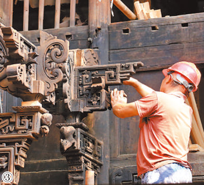 图③:浙江松阳三都乡古村建筑正在修缮中。黄优鑫摄