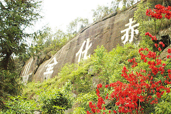 “赤化全川”石刻标语(红军烈士陵园供图)