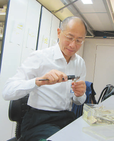 图为袁靖在测量鸟骨