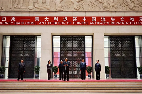 4月24日下午,由中华人民共和国文化和旅游部、国家文物局联合主办,中国国家博物馆承办的“归来——意大利返还中国流失文物展”在中国国家博物馆开幕。文化和旅游部部长雒树刚、国家文物局副局长关强、意大利驻华大使谢国谊以及相关部委、部分驻华使馆代表出席展览开幕仪式。雒树刚宣布“归来——意大利返还中国流失文物展”开幕。中国国家博物馆馆长王春法主持开幕仪式。