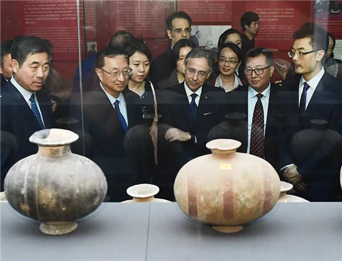 雒树刚在开幕式讲话中指出,此次文物返还,是中国流失文物追索返还工作中历时最长的案例,也是近20年来最大规模的中国流失文物回归。796件中国文物艺术品的回归,根源于中意两国人民对人类文化遗产始终不渝的热爱,得益于中意两国久久为功的双边机制建设,既书写了丝绸之路文明交流互鉴浓墨重彩的华章,更树立了两国文化遗产保护合作的里程碑。中国和意大利同为世界文明古国和文化遗产强国,这批文物艺术品见证了中意两国人民间深厚的历史友谊,也预示着中意两国文明交流互鉴、合作共赢的美好明天。我们愿与各国携手同行,共同守护传承全人类的宝贵文化遗产,不懈致力于促进国与国的文明对话、民与民的息息相通,为实现世界和平发展的美好明天作出新的贡献。