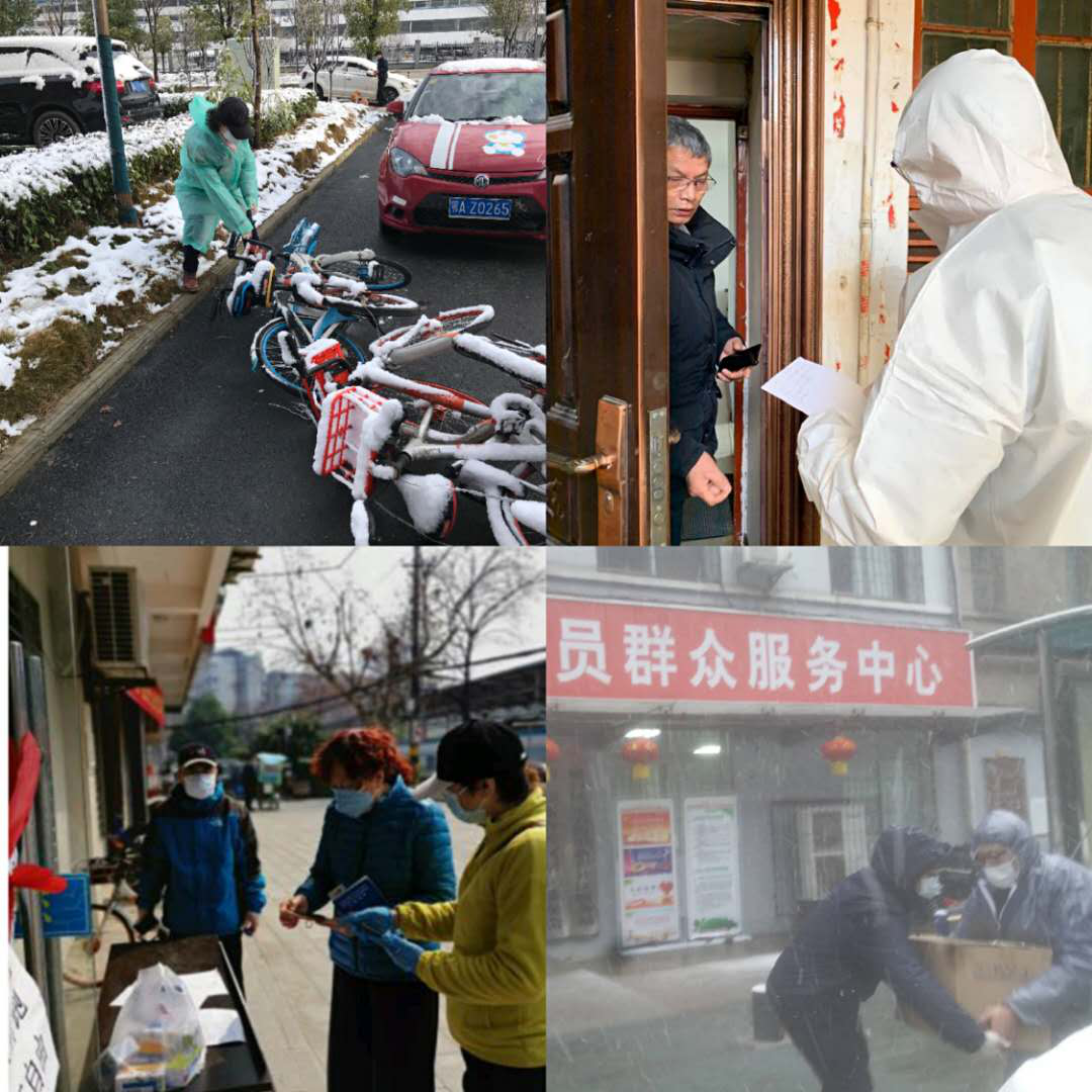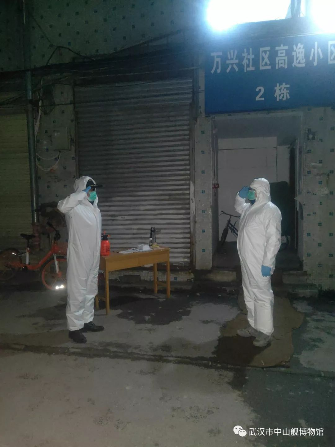2月7日以来,武汉市中山舰博物馆按照要求,迅速组织党员干部到对口社区——硚口区万兴社区进行下沉帮扶工作。根据社区的安排,该馆下沉帮扶人员被分配到万兴社区高逸小区2栋进行值守。该小区属于老旧小区,门栋中有确诊病人,工作条件艰苦。2月15日,武汉气温“断崖式”下跌,天空降下漫天大雪。就在当天,该馆接到了新的工作任务——从2月16日24点开始,增加晚24点至早8点的夜间值班!当时正值武汉天气骤变,气温在零度左右,值守条件异常艰苦,门栋口只有一张桌子,没有帐篷,更无任何取暖设施,通宵要在露天值守,但这些并没有令他们退缩。经馆党委研究,组成了八名同志的值守专班,他们在深夜零时交接,在风雪中坚守。他们互相鼓励,笑称“八勇士”,他们无愧于这一称呼,是武汉文博人的骄傲!