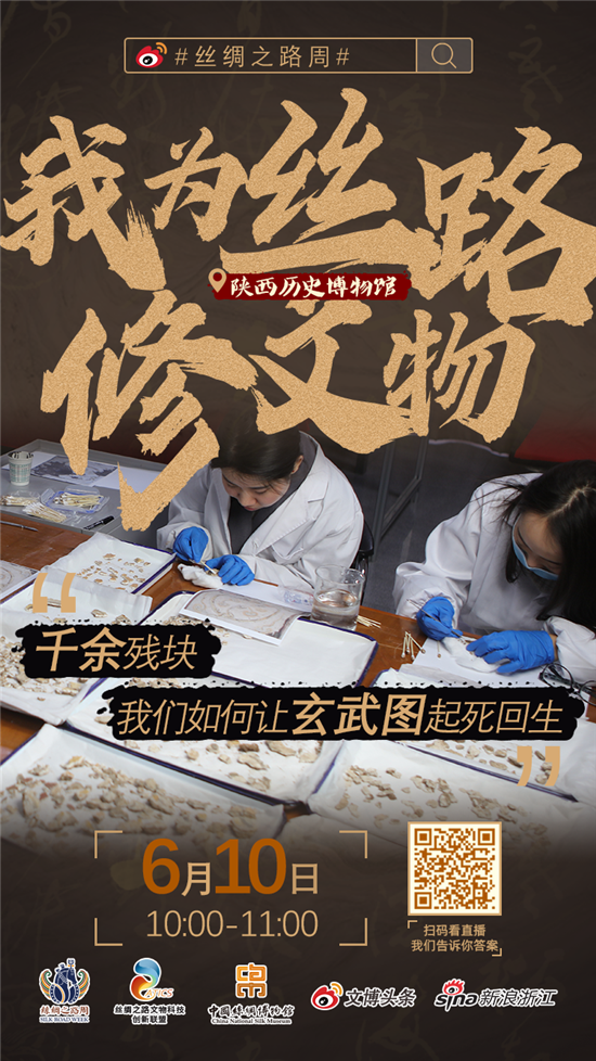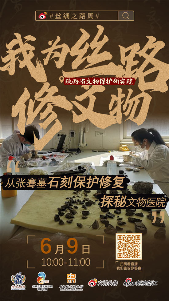 由中国丝绸博物馆联合敦煌研究院、秦始皇帝陵博物院、陕西省文物保护研究院、陕西历史博物馆、陕西省考古研究院、南京博物院等7家文博机构,在线直播文物修复,以更直观的方式将神秘的文物修复展示给观众,也能够让大家更深入了解丝绸之路背后的故事。