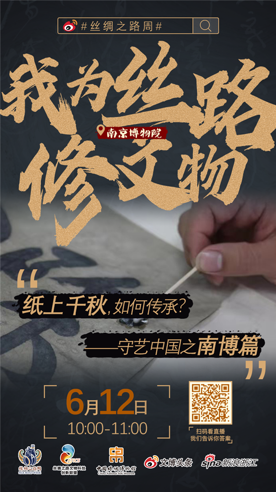 直播亮点:近距离走进书画修复工作室,展示书画文物修复的主要流程,多幅文物修复步骤同时展示,让文物穿越时光,恢复独特的艺术风采。(中国丝绸博物馆)