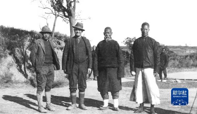 安特生(左二)在仰韶村首次发掘时的留影(资料照片)。新华社发(三门峡市委宣传部提供)