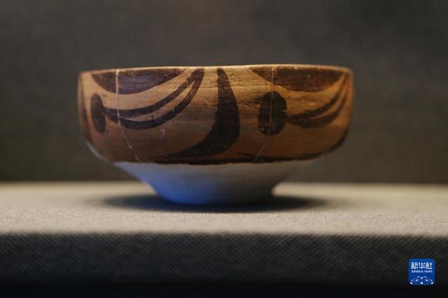 河南省三门峡市渑池县仰韶文化博物馆展出的陶碗(10月15日摄)。新华社记者 许雅楠 摄