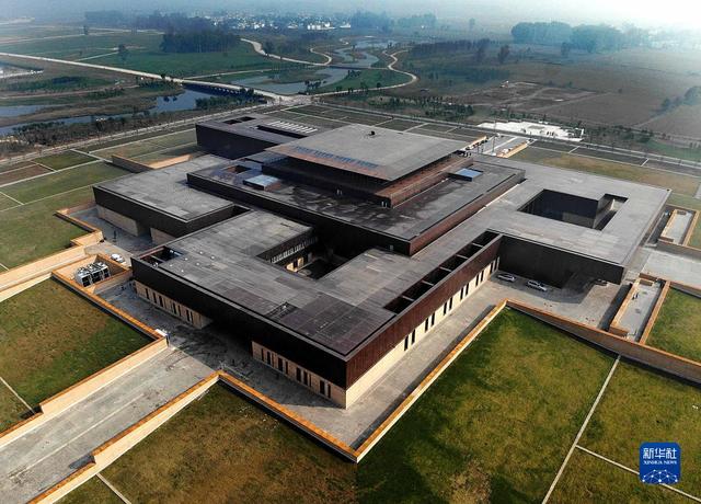 二里头夏都遗址博物馆(2019年10月19日摄,无人机照片)。新华社记者 李安 摄