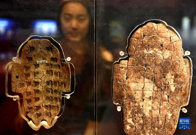 游客在河南安阳殷墟博物馆观看展出的卜甲(2018年10月12日摄)。新华社记者 李安 摄