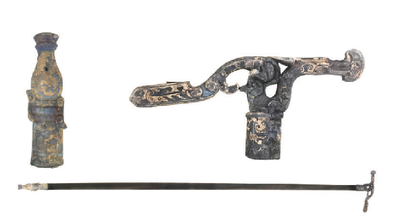 经初步鉴定,这批文物年代集中在战国晚期至西汉早期,涵盖青铜器、漆器两大类,器型包括杖、镇、壶、甗、鐎壶、灯、敦、矛、铍、勺、耳杯、虎子等,文物规格较高,保存较好,具有重要的历史、艺术、科学价值。