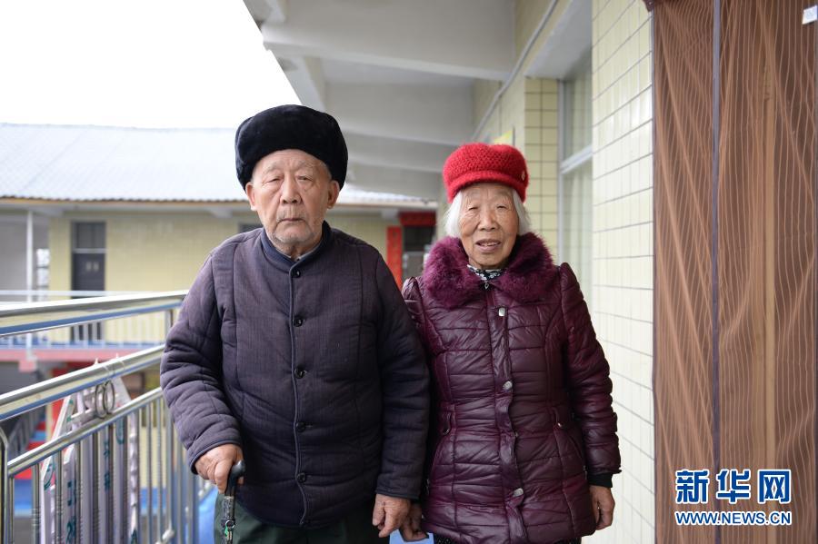 这是1月27日在湖南省张家界市永定区大溶溪光荣院拍摄的侯宗元(左)和老伴田益姑。新华社记者 陈振海 摄