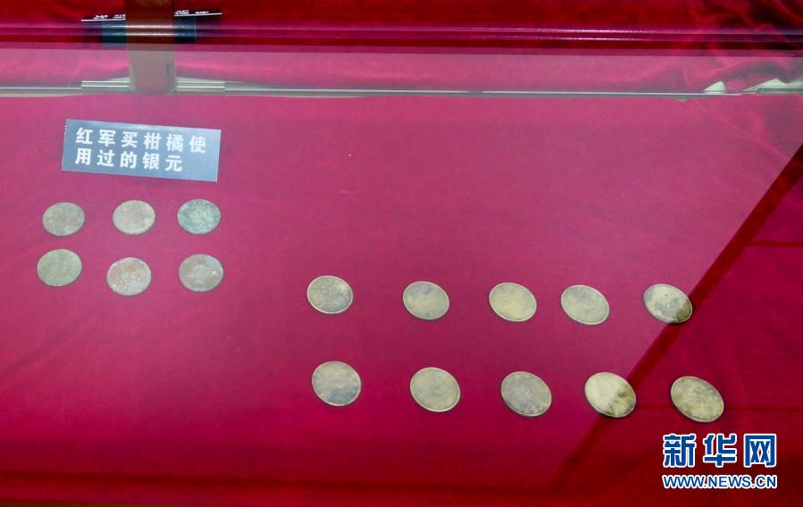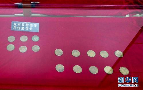 这是1月27日在湖南省张家界湘鄂川黔革命根据地纪念馆拍摄的银元,右下角的十枚是当年红军以高于市价支付给菜农的十块银元。新华社记者 苏晓洲 摄