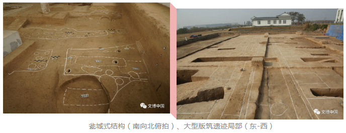 河南淮阳时庄遗址是配合基本建设发掘中的意外收获。遗址面积约10万平方米,其南部为面积约5600平方米的人工垫筑台地,外围有宽度超过30米的浅沟,东、西两侧有夯土围墙。已发掘的2850平方米范围内发现了29座仓储建筑遗迹,外侧涂抹细泥、下有粗颗粒粘土隔水层和细颗粒粘土防水层等防潮措施。废弃堆积中检测出粟、黍类作物的颖壳和用于仓储建筑的芦竹类、茅草类植物的植硅体;浮选出粟、黍和黍亚科种子。虽然参与现场考察的专家们对仓储建筑的具体结构尚有争议,但一致认为这是目前龙山时代仅见的一处粮食仓储聚落,意义重大。