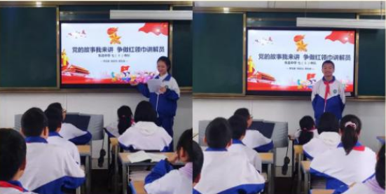 观山湖区朱昌中学组织各中队开展 " 党的故事我来讲——争做红领巾讲解员 " 主题中队会。各中队少先队员为大家讲述了李大钊、方志敏等革命英雄的感人事迹,介绍了中国共产党诞生、成长、壮大的光辉历程中的重大事件。辅导员老师向负责讲解的少先队员授予了 " 红星章 ",激励他们继续进取,深入学习党的历史。