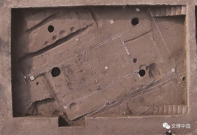 隆平寺塔基塔心室夯土层中的木梁结构及地宫(上为北)