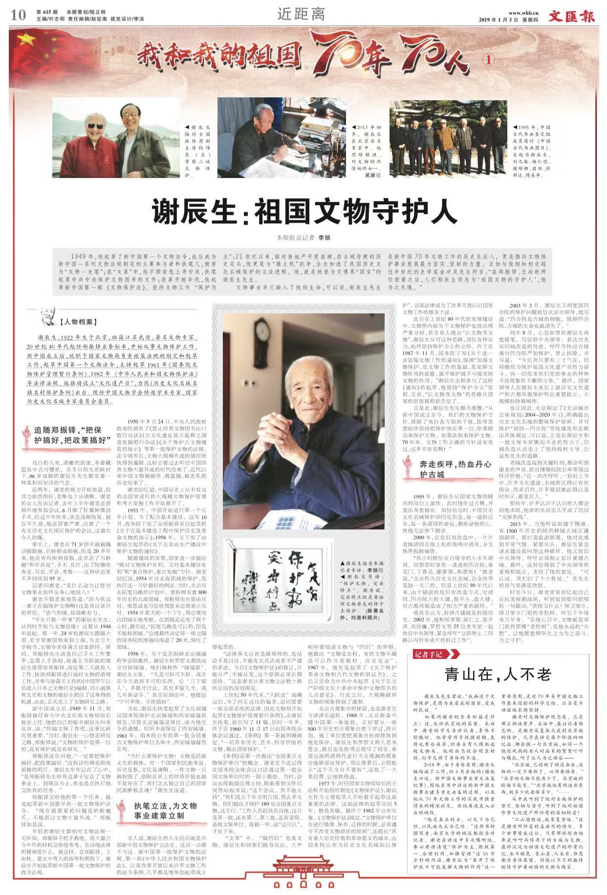 《谢辰生:祖国文物守护人》刊发于《文汇报》2019年1月3日的“我和我的祖国——70年70人”专版