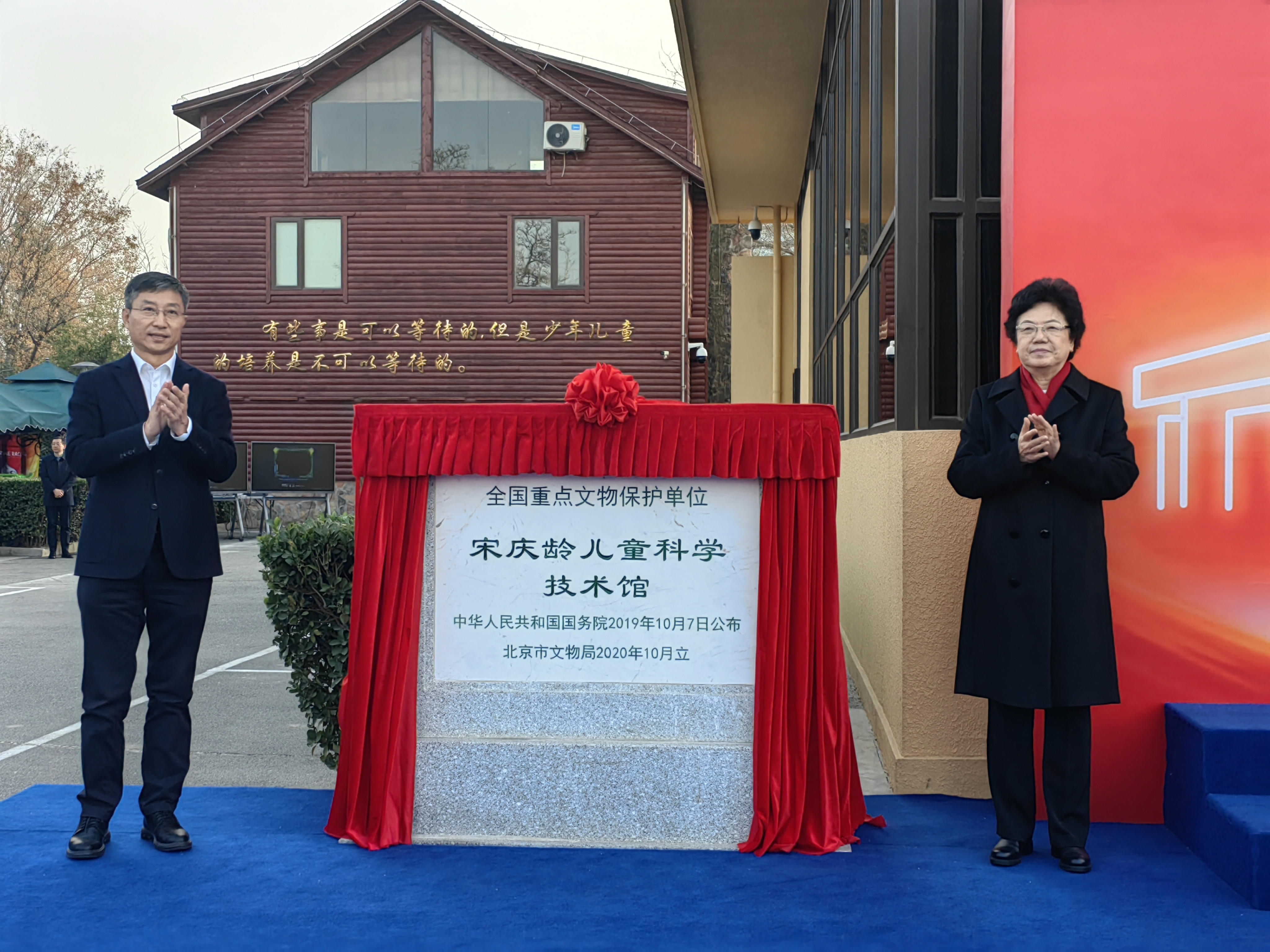12月6日,“全国重点文物保护单位标志碑揭幕暨宋庆龄儿童科学技术馆‘缔造未来’展览开幕仪式”在宋庆龄儿童科学技术馆举行。第十三届全国政协副主席、中国宋庆龄基金会主席李斌,副主席沈蓓莉,国家文物局副局长罗文利出席仪式。李斌、罗文利同志共同为全国重点文物保护单位标志碑揭幕并参观“缔造未来”展览。