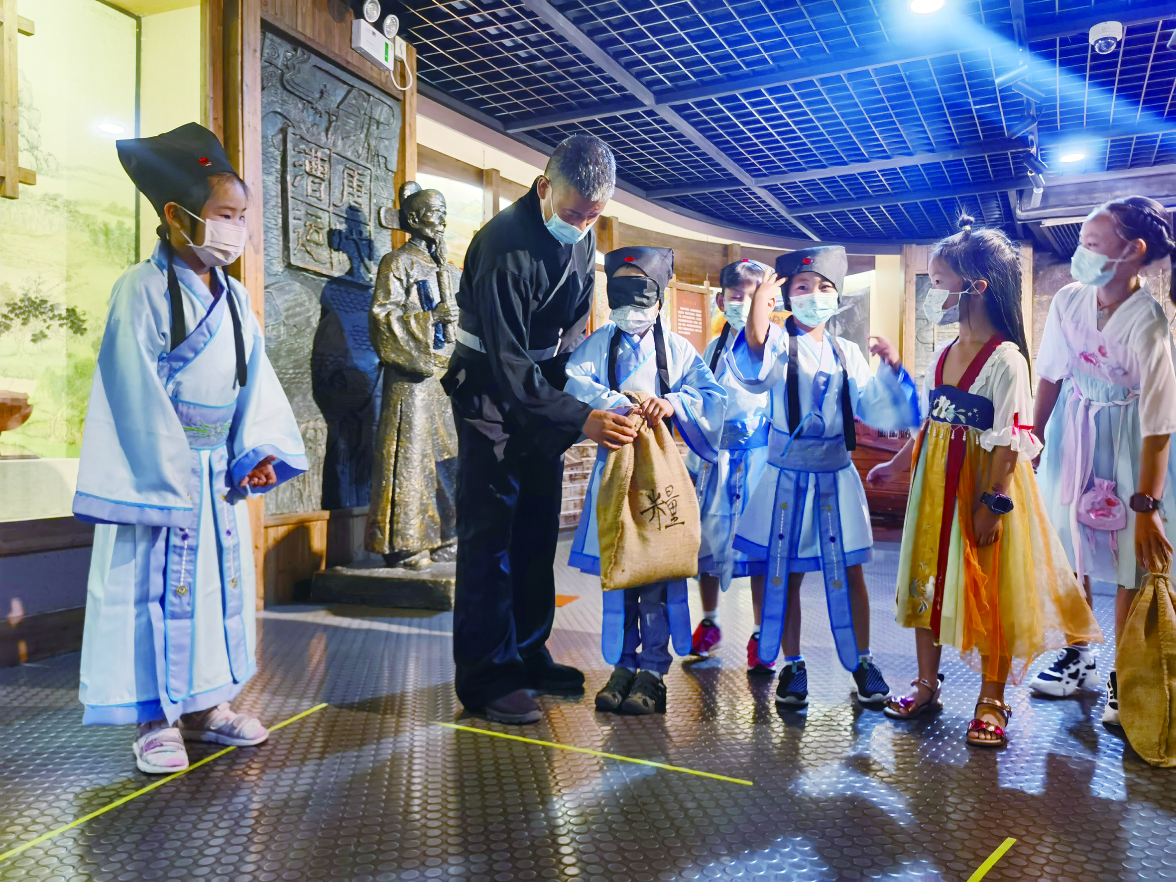 杭州京杭大运河博物馆的小书童体验搬运粮食