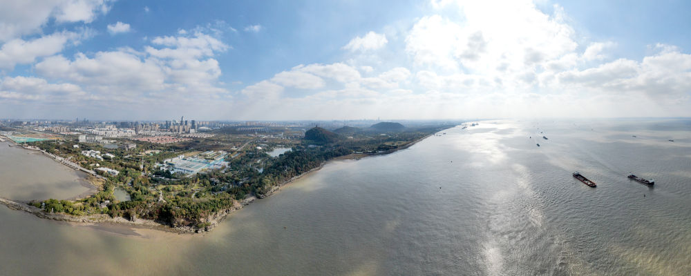 这是2020年11月13日拍摄的江苏省南通市五山及沿江地区景色(无人机全景照片)。新华社记者 季春鹏 摄