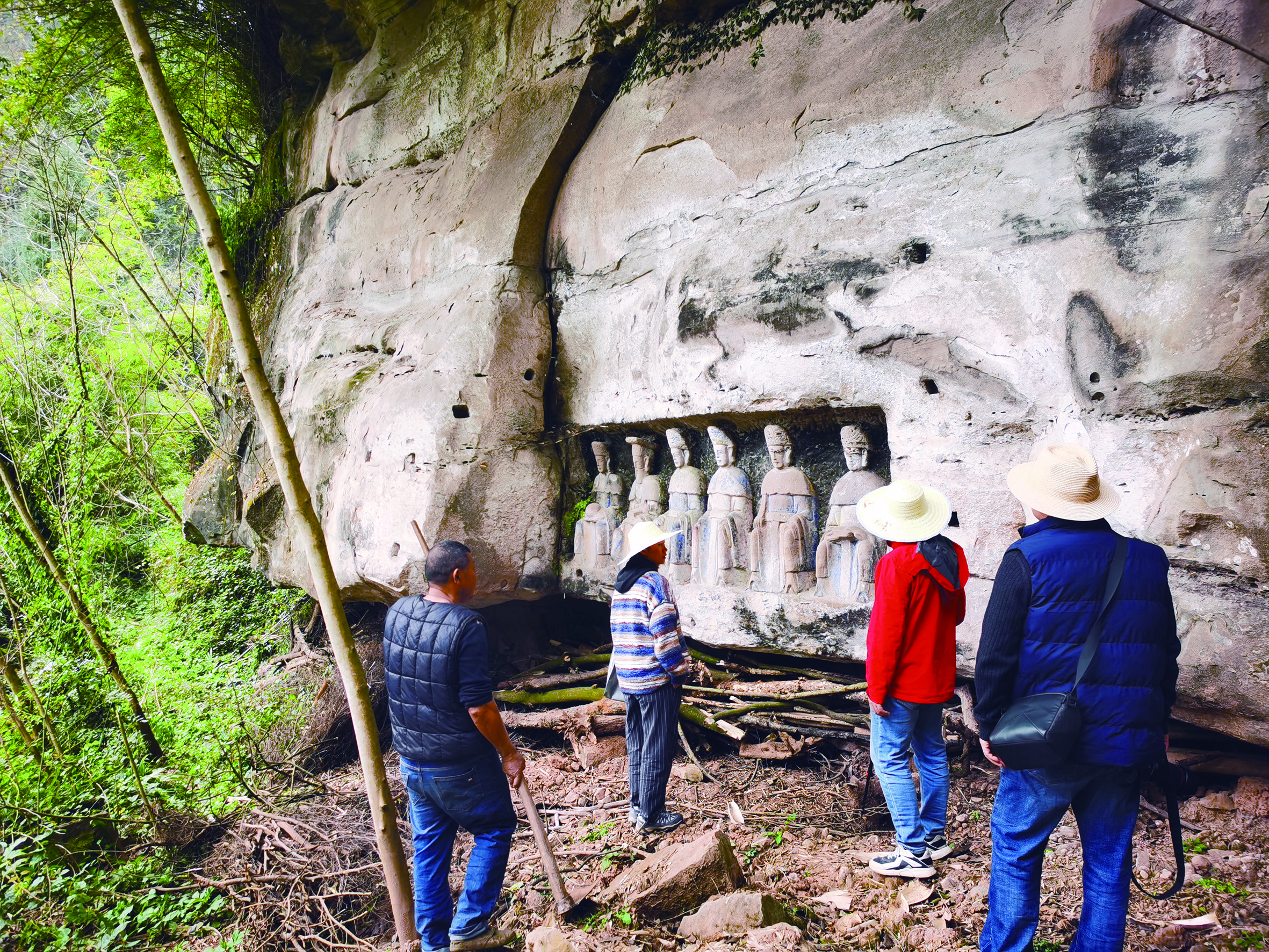 在此次普查试点工作中,安岳县构建起“党委统筹、政府主导、乡镇部门配合、群众积极参与”的决策与执行体系,确保普查工作的全局把控与落地实施。经费层面,采取一事一议的方式,足额保障普查试点工作经费,先期解决经费60万元,用于普查设备配置、车辆租赁、普查人员野外津贴等,确保普查工作经费无忧。技术层面,引入无人机航拍、三维建模等现代科技手段,实现传统与现代技术的无缝对接。在前期准备阶段,普查队伍收集大量档案资料,通过研究梳理,精准勾画出试点区域的文物分布图,科学合理规划了普查线路,大大提高普查效率。普查过程中,采用“两上两下”文物调查法,即“自下而上、上下结合”的调查方法,由试点乡镇自查上报当地石窟寺及石刻点位,县普查领导小组办公室分析研究后反馈至乡镇,乡镇会同普查人员再次核查上报。实施“以老带新”人才培养模式并优化组建调查队伍。同时,多方位开展宣传,营造良好普查氛围。