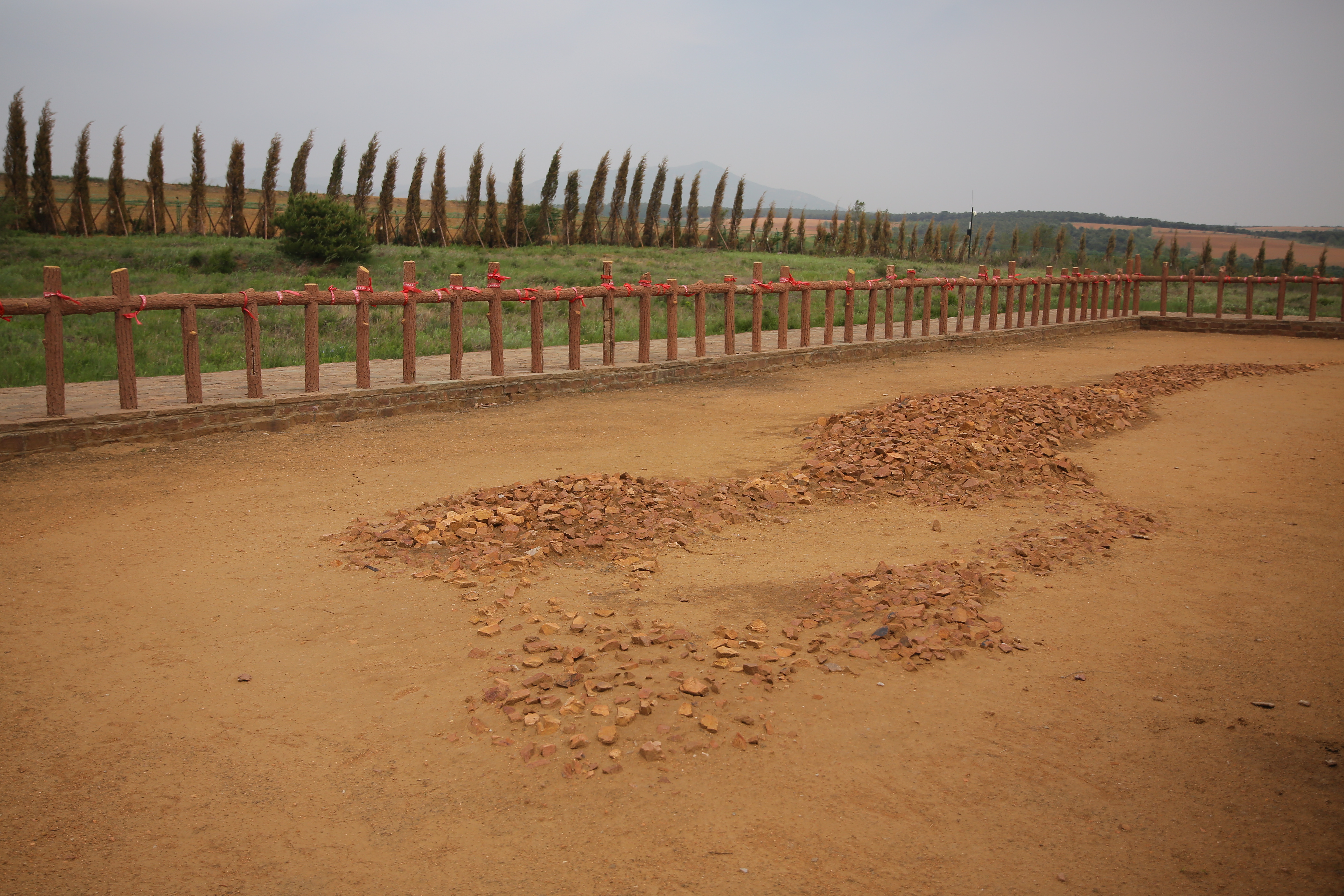 查海遗址龙形堆石。距今约8000年的查海遗址是辽河流域发现最早的新石器时代史前聚落遗址,在该遗址中心位置发现长约19.7米的龙形堆石,被称为“中华第一龙”。查海遗址为探讨东北地区新石器时代文化体系、北方早期农业形态、用玉文化的缘起等提供重要资料。