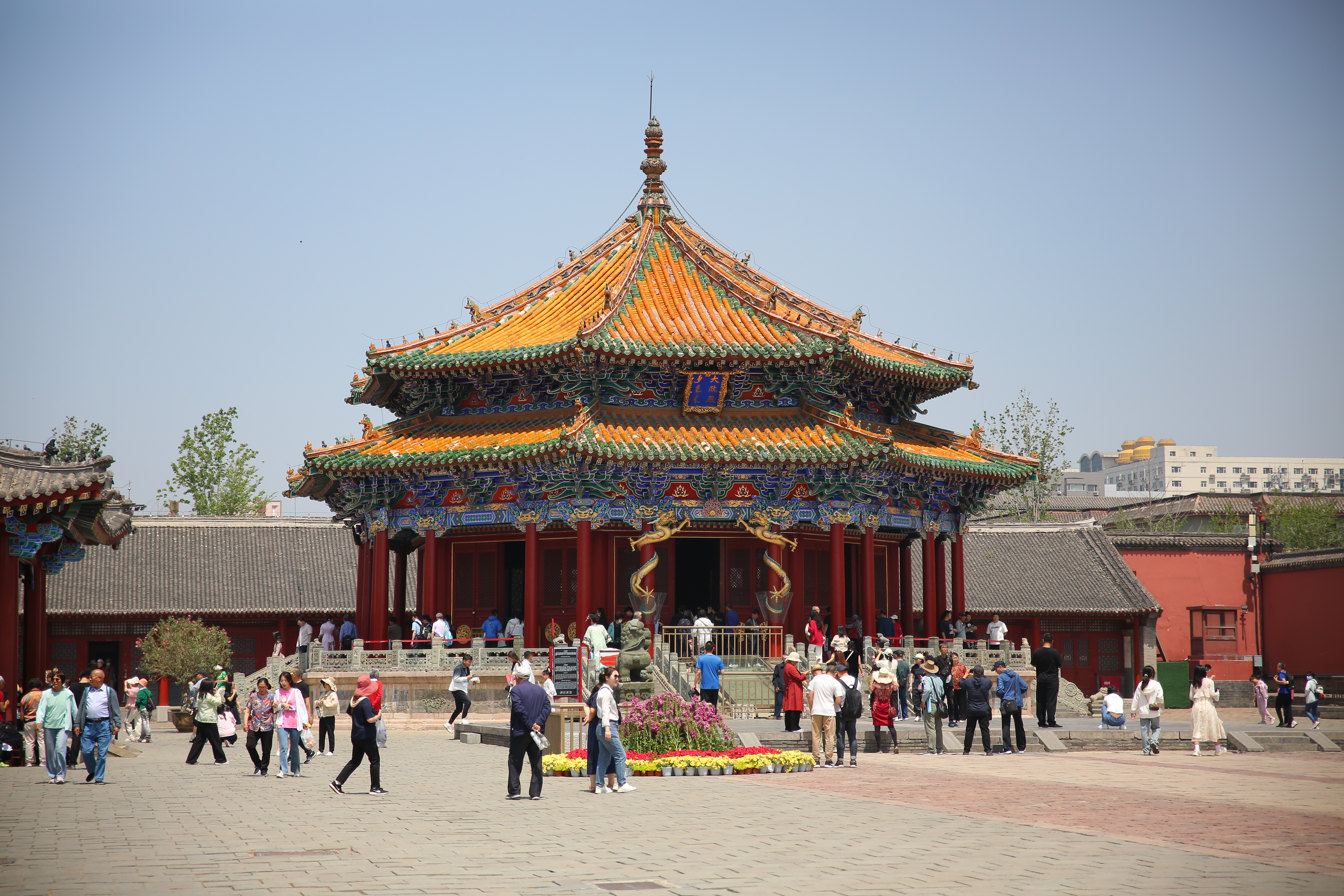 沈阳故宫大政殿前游人如织。沈阳故宫始建于1625年,蕴含浓郁的满族传统文化,融合了宫殿建筑与地方民居的建筑特征,具有极高的历史、艺术和科学价值。据统计,2024年春节假期,在全国一级博物馆中,沈阳故宫博物院进入国内热门博物馆热度榜前十位。
