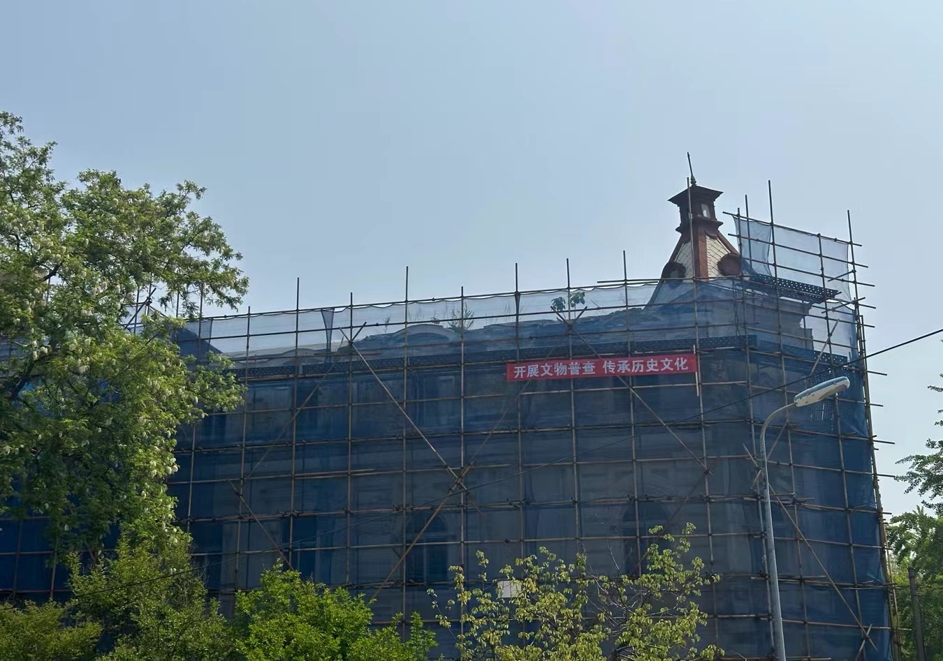 正在修缮中的旅顺师范学堂旧址。该旧址具有百余年历史,俄罗斯古典风格建筑,是辽宁旅顺口军民融合国家文物保护利用示范区创建任务中10处文物修缮工程之一。目前军地文物主管部门正在协商修缮后的活化利用具体事项。