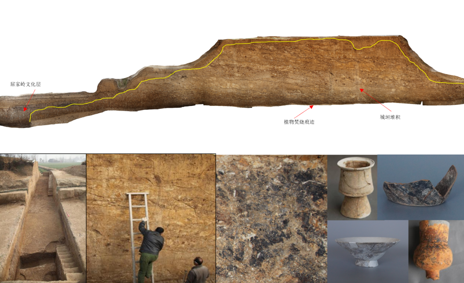 发掘显示,城河遗址城墙上方叠压着屈家岭文化层,表明始建年代不晚于该文化时期。现存城墙高度超过4.8米,其底部发现一层灰烬层,经测年约为距今4900年。灰烬层呈现草本燃烧痕迹,推测在当时的秋冬农闲时节,人们焚烧草地后开启了筑城工程,奠定了城河遗址城墙的基址。