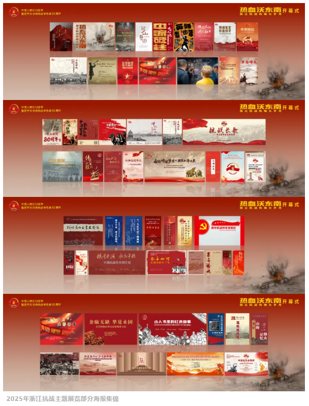 一是聚力推出精品展览。全省积极推出抗战主题展览,“北上!北上!——中国工农红军北上抗日先遣队暨挺进师特展”“热血沃东南——浙江抗战的烽火岁月”“血与火铸造的友谊——杜立特行动衢州大救援主题展”三个展览入选中共中央宣传部、中央网信办、国家文物局联合公布的纪念中国人民抗日战争暨世界反法西斯战争胜利80周年主题陈列展览推介名单。“浙北壮歌”“四明丹心”“半岛烽火”“七天七夜嘉善阻击战”“烽火江南”等展览具有鲜明的地域特色;“山河铭记”电影海报展、“壮歌嘹亮”抗战歌曲展、抗战版画展、“河山春回”中医药与抗战展等展览小中见大;“抗战中的丰子恺”“抗战中的茅盾”、张乐平抗战作品展、张天方文史展、“英雄出少年”等展览让公众对抗战先辈有了更全面的认识,同时部分场馆积极引进“中流砥柱——中国共产党抗战专题图片展”“正义审判——新中国审判日本战犯史实特展”等展览,部分展览如“北山!北上!”“衢州抗战史图片展”“临海的抗战岁月”等积极开展省内外巡展,为公众提供优质的精神食粮。