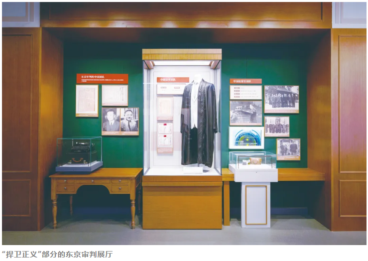 “捍卫正义”部分是展览重点展示内容,全面系统地展示了国际社会对法西斯主义与军国主义战争罪行的审判历史,涵盖纽伦堡审判,远东国际军事法庭审判,同盟国对乙级、丙级日本战犯的审判,以及中华人民共和国对日本战犯的改造与审判等史实,形成关于战后审判的完整叙事体系。展陈结合司法文书、庭审记录、历史影像等一手资料,充分彰显战后审判的历史意义。其中,中国积极参与并主导了对日本战犯的审判工作,特别是中华人民共和国成立后,中国在对日本战犯的审判中坚持以法律为准绳、以事实为依据,在严惩战争罪犯的同时,秉持人道主义精神,创造了战犯审判史上的奇迹。