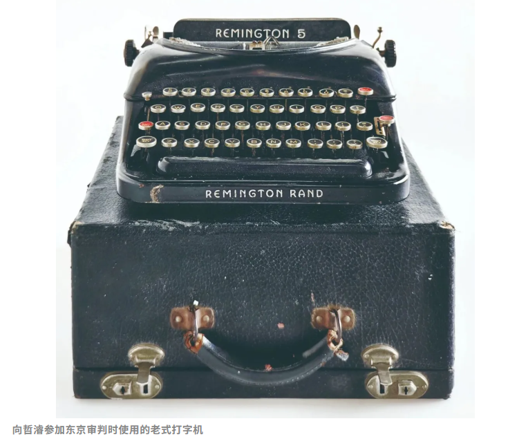 在展览的东京审判章节,展出了由上海福寿园人文纪念馆提供的两件珍贵文物:一件是中国检察官向哲濬在参加东京审判庭审期间所使用的雷明顿牌机械打字机。这台打字机曾用于撰写对日本战犯的起诉书及数万字证据摘要,记录下日军侵华期间所犯下的滔天罪行,是法理对抗暴行、正义终结侵略的历史见证。