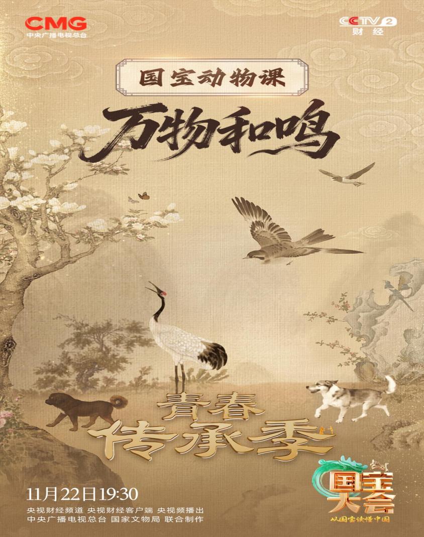 11月22日19:30,锁定央视财经频道、央视财经客户端、央视频,《寻找国宝传颂人——中国国宝大会》(青春传承季)第二期,一同走进动物国宝的世界,开启跨越时空的生命对话,感受人与动物和谐共生的千年传承之美!