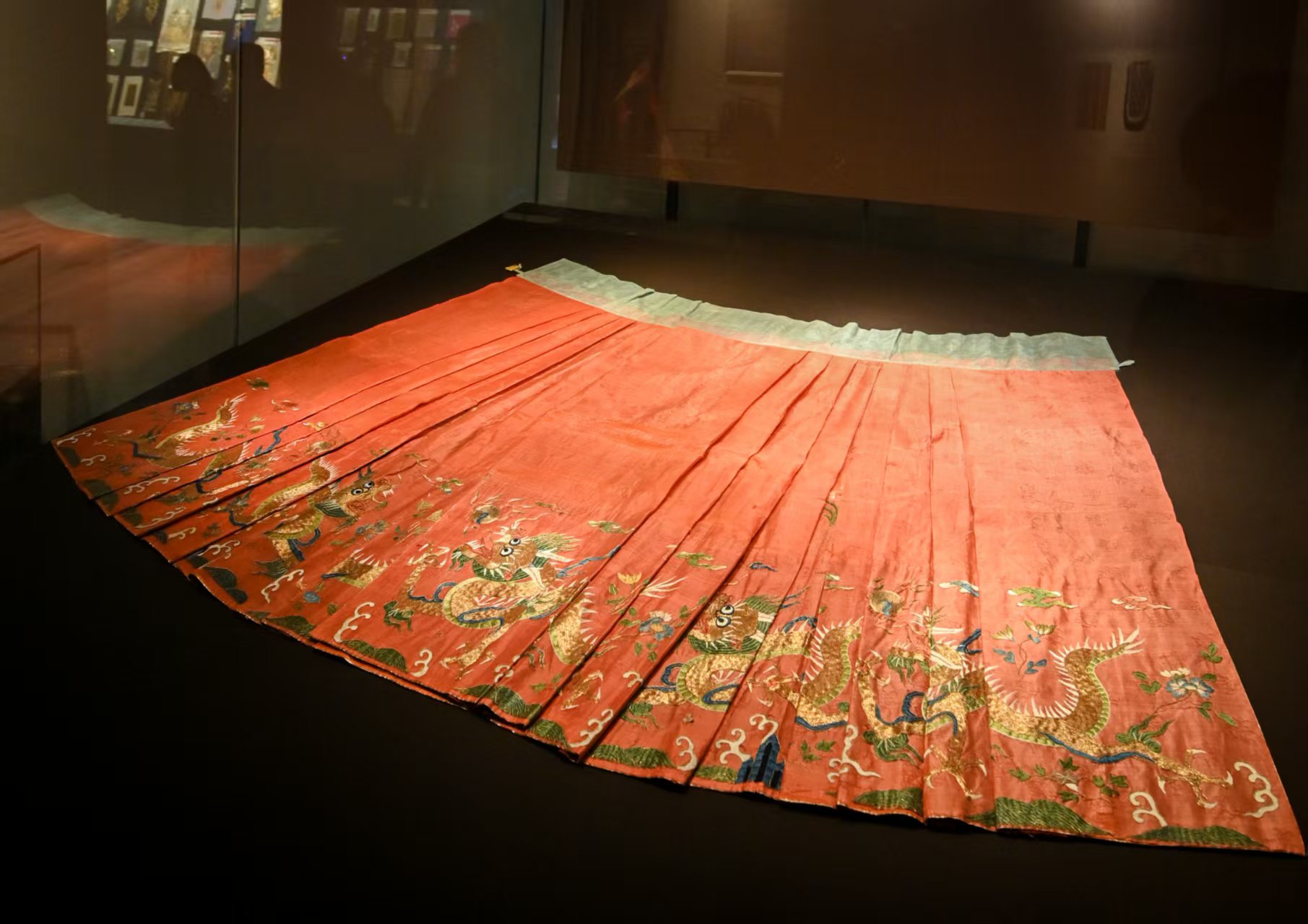 盘金绣红罗女裙 明(1368—1644年) 山东博物馆藏