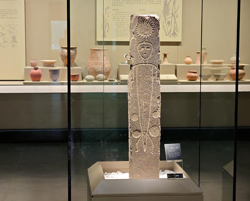 而“太阳人”石刻 正是这一时期的精神图腾 相较于陶器、石器等生活用具 这件近1.2米高的石刻 标志着长江中游 已出现复杂祭祀体系与社会组织 为中华文明多元起源提供铁证