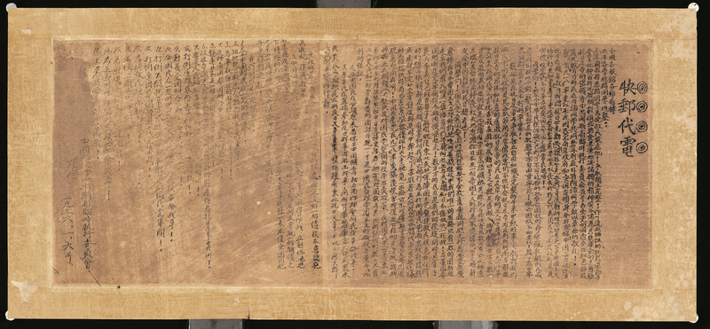 这份快邮代电纵22.2厘米,横53.3厘米,黑色油墨油印,为一级文物,现收藏于浙江省博物馆。