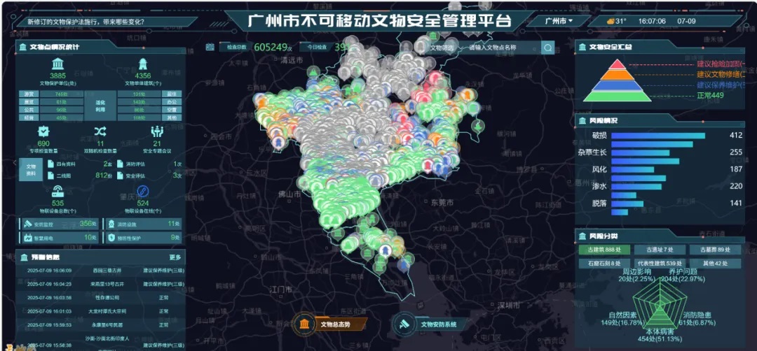 广州还在市专项保护资金中设立了文物保护巡查员补助经费,统筹帮助市和各区建立文物巡查员队伍,通过日常巡查、抽查,构建起“横向到边、竖向到底”的全市不可移动文物安全监管社会化、信息化网络。