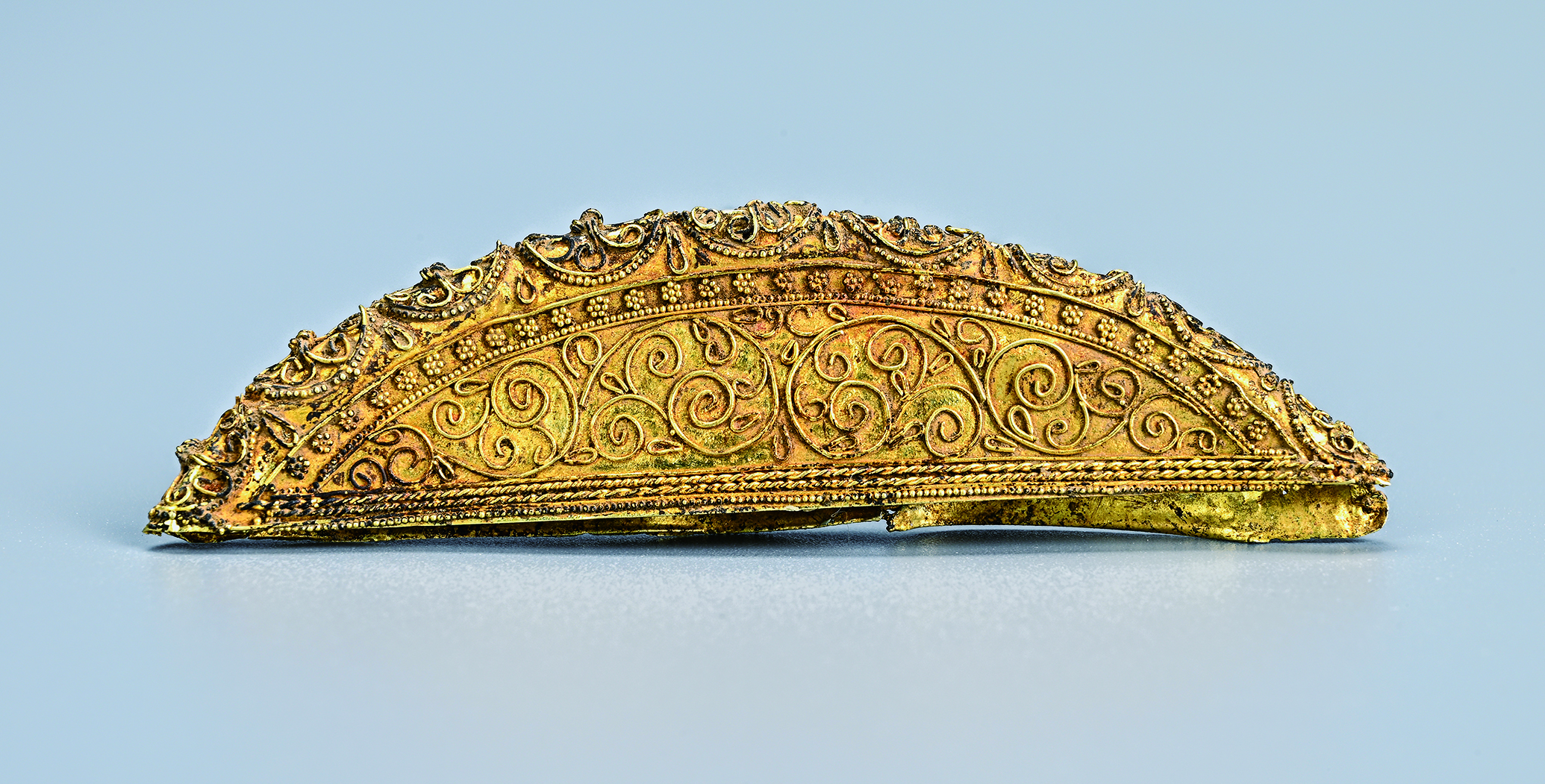 为配合西安市长安区神禾二路贾里村改造项目建设工程,2022年1月至2024年4月,陕西省考古研究院对项目用地范围内的古墓葬进行发掘。其中编号为M228的墓葬出土有陶瓷器、铜器、铁器、金银器、石器等19件(组),尤以金梳背、银三足罐、银高足杯、波斯萨珊银币等金银制品最为精美,为研究盛唐时期的中外文化交流及贸易往来提供了新的实物资料。