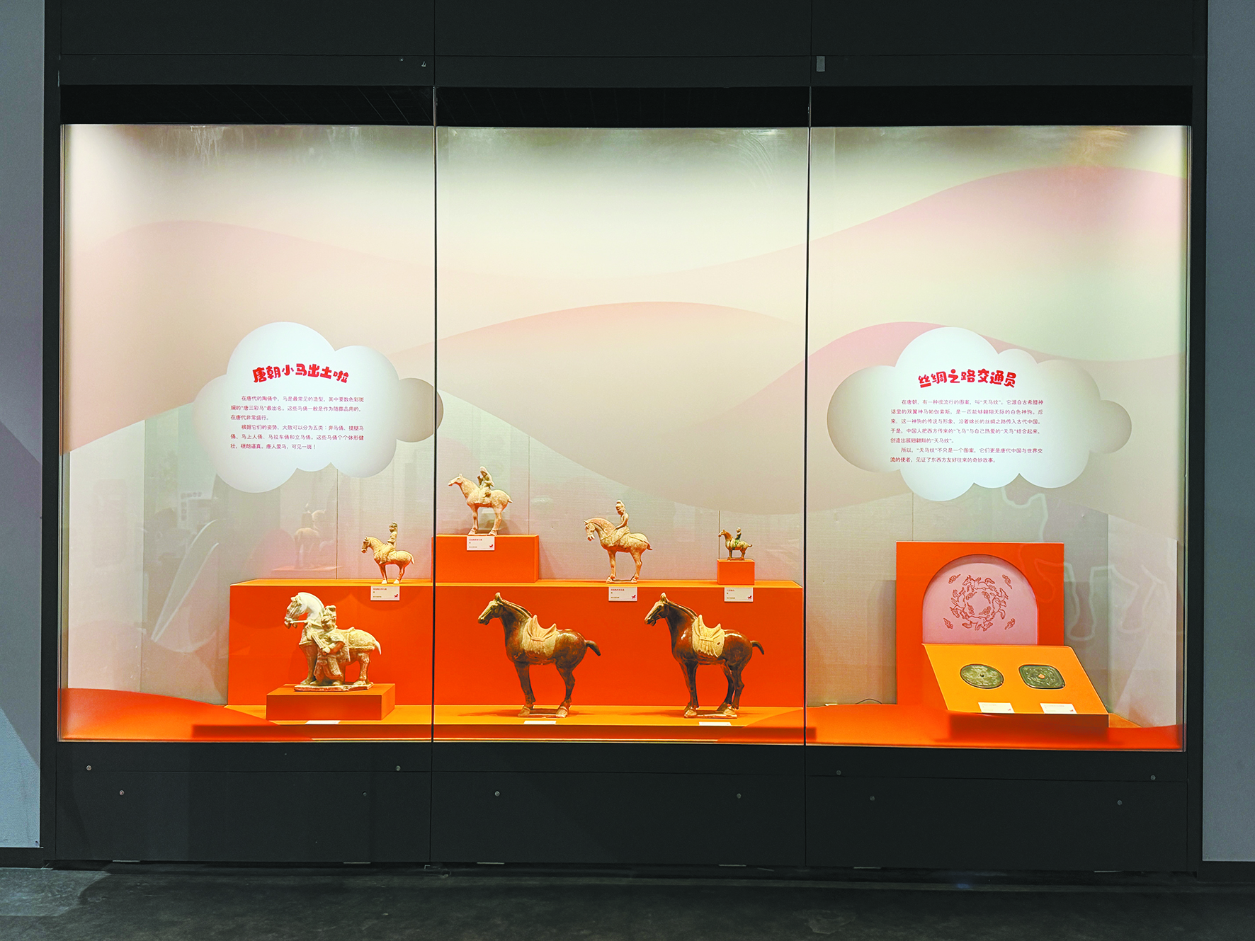 同时,展览设置四大互动区,创新融合“马儿知识小问答”“丝绸之路推推看”“马字演变科普”“绘本故事屋”等形式,以互动体验激发少年儿童探索兴趣;同步推出“奔马”“立马”“提腿马”“马上人俑形”四款主题勇士卡,通过知识打卡的形式兑换奖励,让孩子们在趣味互动中了解中华民族优秀传统文化,传承中华民族自强不息、开拓进取、包容共进的精神基因,助力培育符合社会主义核心价值观的时代新人。
