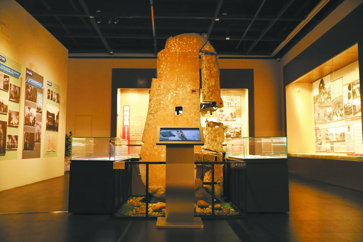 展厅中陈列的一件重庆三峡移民纪念馆馆藏中美空军混合联队B-25轰炸机垂直尾翼残骸,于万州红砂碛江边打捞出水,它不仅承载了中外并肩作战的历史记忆,也彰显万州在川渝抗战体系中的重要战略地位。