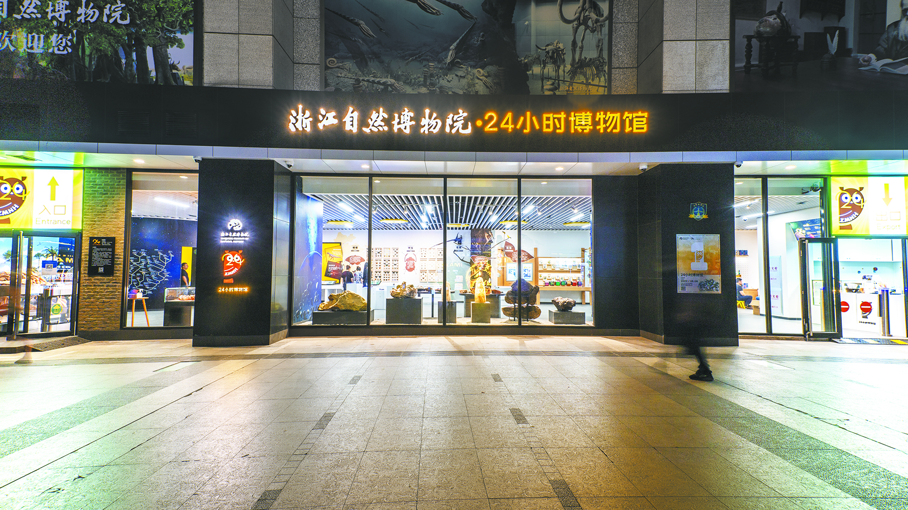 杭州馆的“时空穿梭展线”充分利用场馆物理空间,观众从一楼序厅出发,沿着精心设计的路线逐层攀升参观,即可循着地球演化脉络,邂逅寒武纪澄江动物群的奇虾、三叶虫,见证恐龙灭绝的沧桑,通过大量动植物标本认识生物物种,了解奇妙的人体构造,感受人类与自然的共生历程。记者在展厅中遇到一位蹦跳着背诵地质年代的小朋友,母亲腼腆地笑道:“他总要来这里‘探险’,这些知识我们没教过,都是他自己学会的。”这正是“知识不语,浸润无声”的生动写照。安吉馆“绿水青山的召唤”生态展厅是国内自然类博物馆中首个生态主题常设展。展览以介绍“生物圈二号”实验开篇,通过“实验为何失败”的设问引发观众思考,再沿着生态平衡、物种保护、可持续发展的逻辑展开,引导人们深入了解生态系统的机制特点,重新审视人类与自然的关系。24小时博物馆内,冬日20点后的场景同样动人:家长孩子一起围在显微镜前观察植物细胞,情侣在化石展柜前轻声交流,年长观众驻足品读标本背后的故事……博物馆每季度更新展品,从动物形态到矿物共生,再到生态系统,多维度呈现自然科学内涵,不断丰富广大观众的精神文化需求。