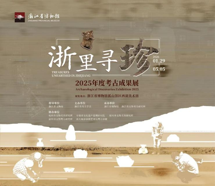 简介:展览呈现“2025年度浙江考古重要发现”25项入围项目,分“筑居考 从史前家园到历史村落”“叠城录 城市考古与历史叠影”“葬仪观 古代墓葬的秩序与信仰”“造物记 煮海成盐与烧土为瓷”四个单元,以遗址类型为叙事线索,融合“实物+图像+影像”的立体展陈方式,引领公众深入考古一线,追溯浙江自史前文明萌芽至历史时期辉煌的发展脉络。