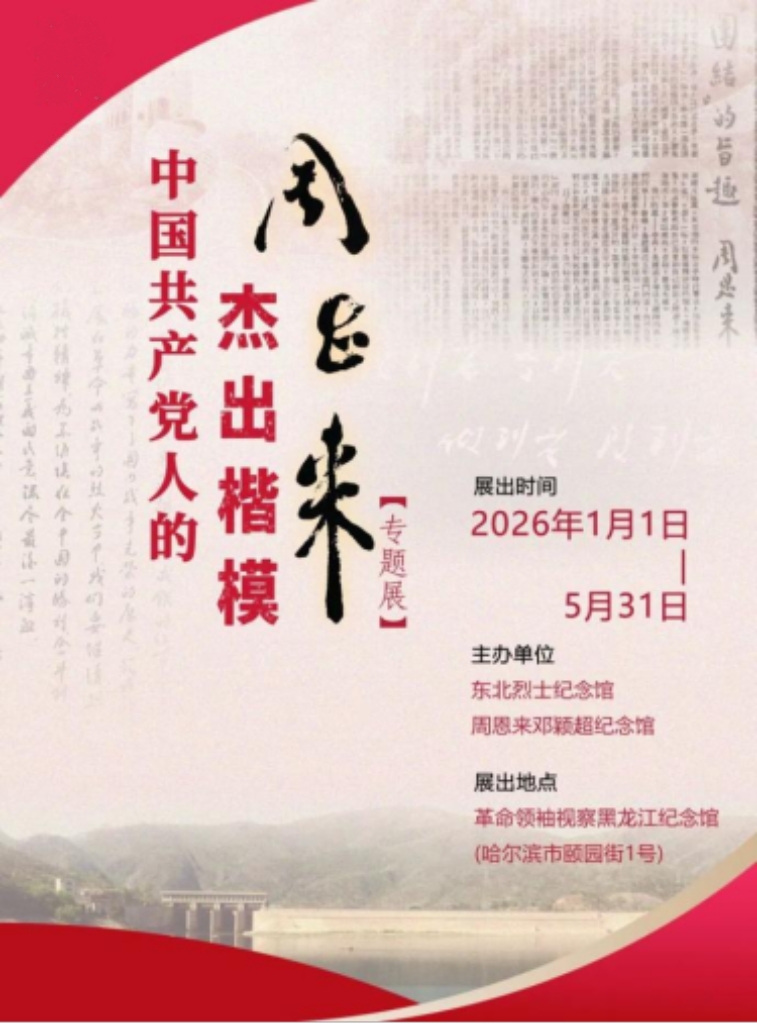 简介:2026年是周恩来逝世50周年。展览分为“不忘初心、坚守信仰”“对党忠诚、维护大局”“热爱人民、勤政为民”“自我革命、永远奋斗”“勇于担当、鞠躬尽瘁”“严于律己、清正廉洁”六个部分,通过百余张历史照片和珍贵文物文献,展现周恩来的高尚品德和伟大风范,追思和学习周恩来作为中国共产党人杰出楷模的崇高精神,引导广大党员干部群众从周恩来同志的奋斗历程中汲取智慧和力量,坚定理想信念,在新时代新征程上传承党的红色基因,发扬党的优良传统。