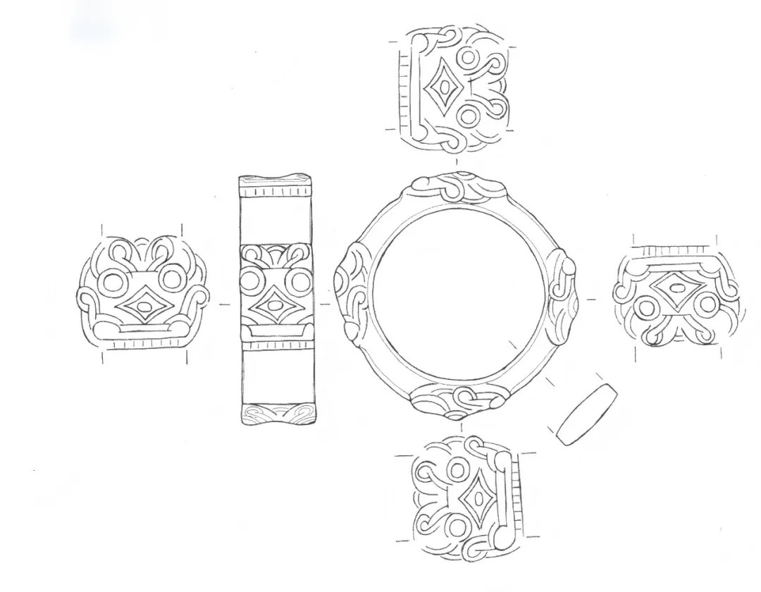 龙首纹玉镯线描图龙首的眼、鼻之间有一菱形图案