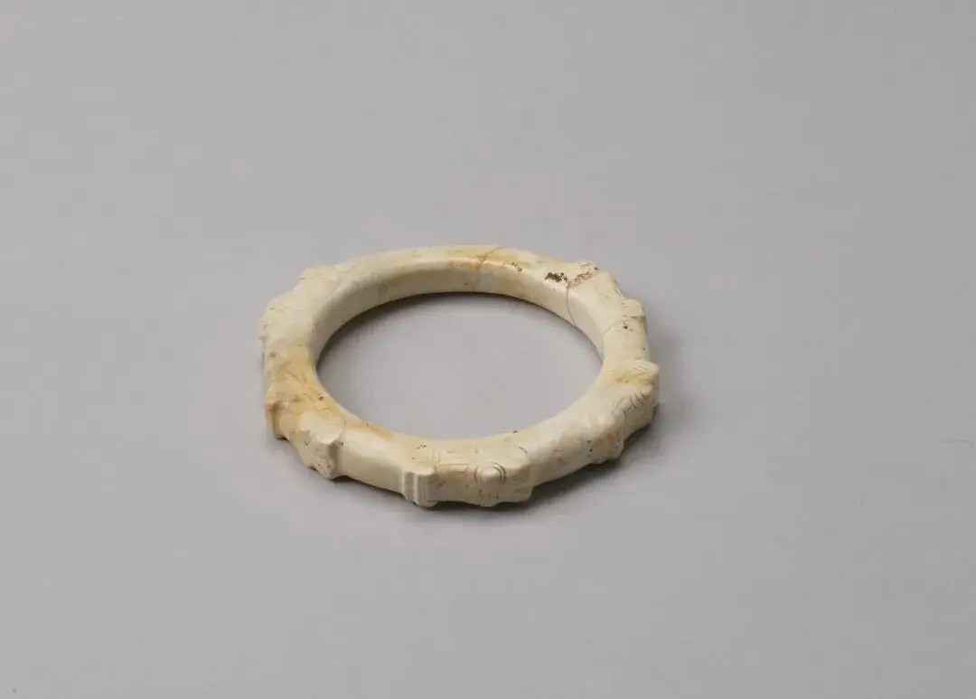 良渚文化余杭区北村遗址出土的龙首纹玉镯,一共有六个“龙首”。 03