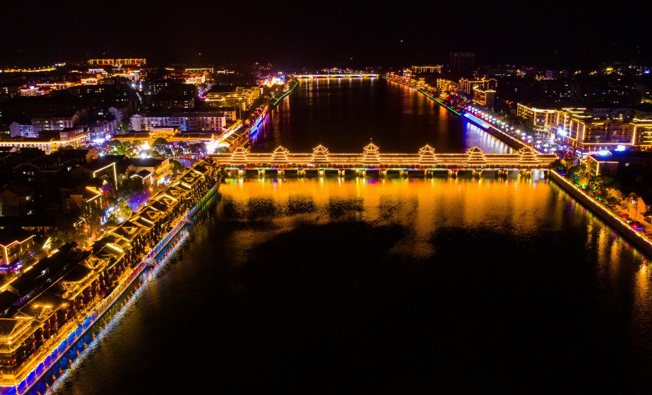 守护千年文脉,也为发展注入新动能。芷江将抗战文化提升为和平文化,连续举办六届“中国芷江国际和平文化节”,与法国、美国、俄罗斯、泰国的4个城市缔结友好城市,在文化、教育、经贸等多领域深化合作。芷江以和平文化为纽带,在推动不同文明交流互鉴中践行人类命运共同体理念,让这座千年古邑成为增进理解与友谊的桥梁。围绕古沅州八景,将龙津风雨桥、天后宫、索子街等古建筑群与光影艺术结合,打造“和平湖夜游”项目,成功入选全国乡村旅游精品线路、湖南省首批文旅消费“新生代·新场景”,和平湖风景区获评省级旅游度假区。