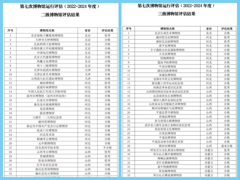 中国博物馆协会公示二、三级博物馆运行评估结果